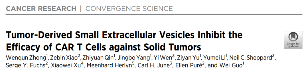 文献分享|实体瘤来源的小型细胞外囊泡抑制CAR-T细胞疗效